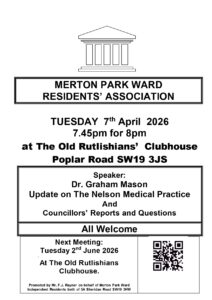 Welcome to the website of the Merton Park Ward Residents’ Association (MPWRA). Here’s where to get updates on local events happening in Merton Park and the surrounding area; Plus issues affecting your neighbourhood, read information behind the stories and give your opinions on things that matter to you. Come along to one of our popular monthly meetings, and hear from your local ward Councillor’s as well as having the opportunity to ask questions. Sign up to our email alerts, and take a look at FORUM the bi-annual newsletter of Merton Park Ward Residents’ Association. Finally of course, why not show your support and become a member of MPWRA?